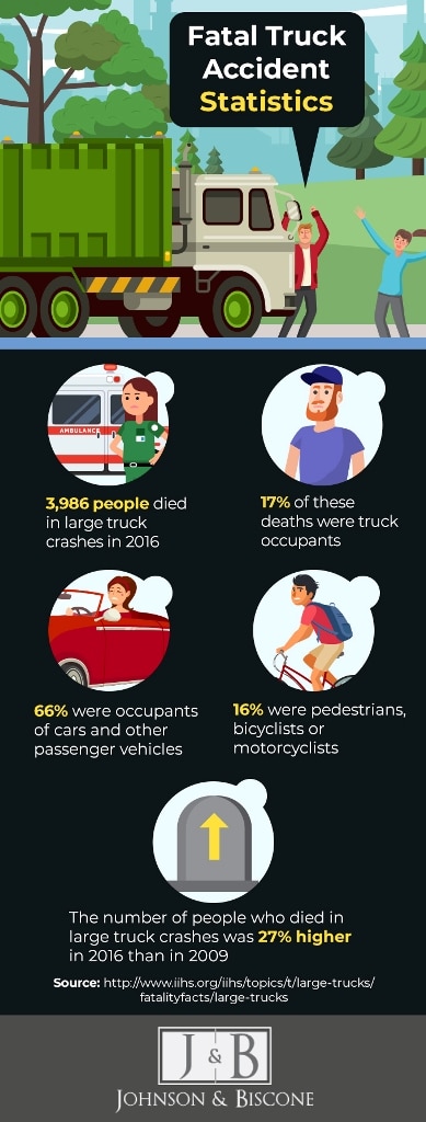 Some combination of these factors may be involved in your case. Truck accident lawyers at Johnson & Biscone, P.A. will investigate all parties and causes and take action on your behalf.