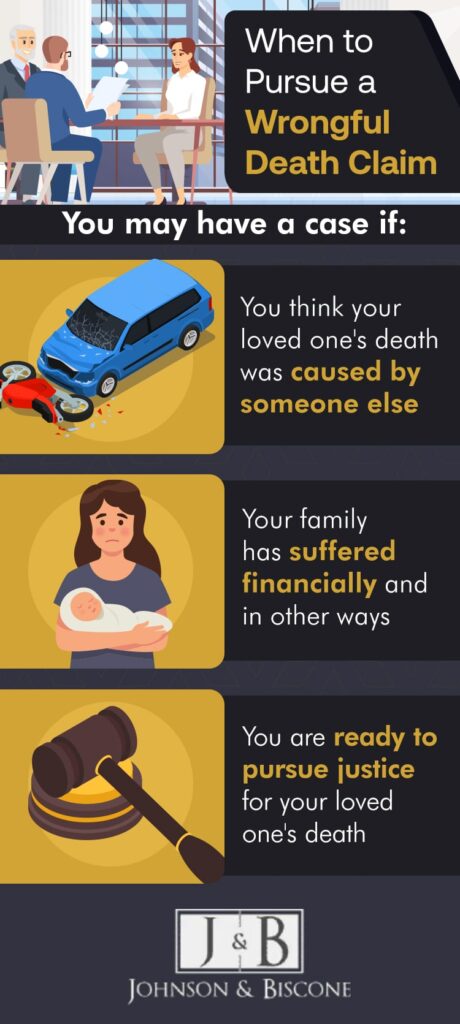 - Consult a Wrongful Death Attorney: Contact an attorney who specializes in wrongful death cases. Our team at Johnson & Biscone can provide guidance on the viability of a wrongful death claim, explain the legal process, and help determine the parties that can be held liable.